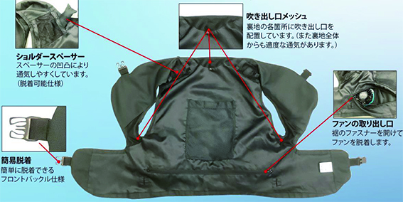 従来の空調服で気になる点の一つに稼働時の服の膨らみがあります。